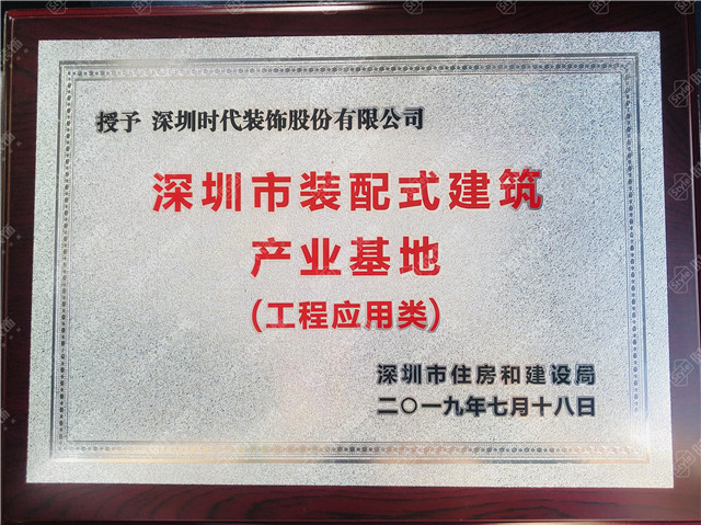 2019年7月18日,深圳市住房和建設(shè)局公布首批裝配式建筑產(chǎn)業(yè)基地名單,深圳時(shí)代裝飾股份有限公司成為首批工程應(yīng)用類“深圳市裝配式建筑產(chǎn)業(yè)基地”唯一的裝飾企業(yè)。