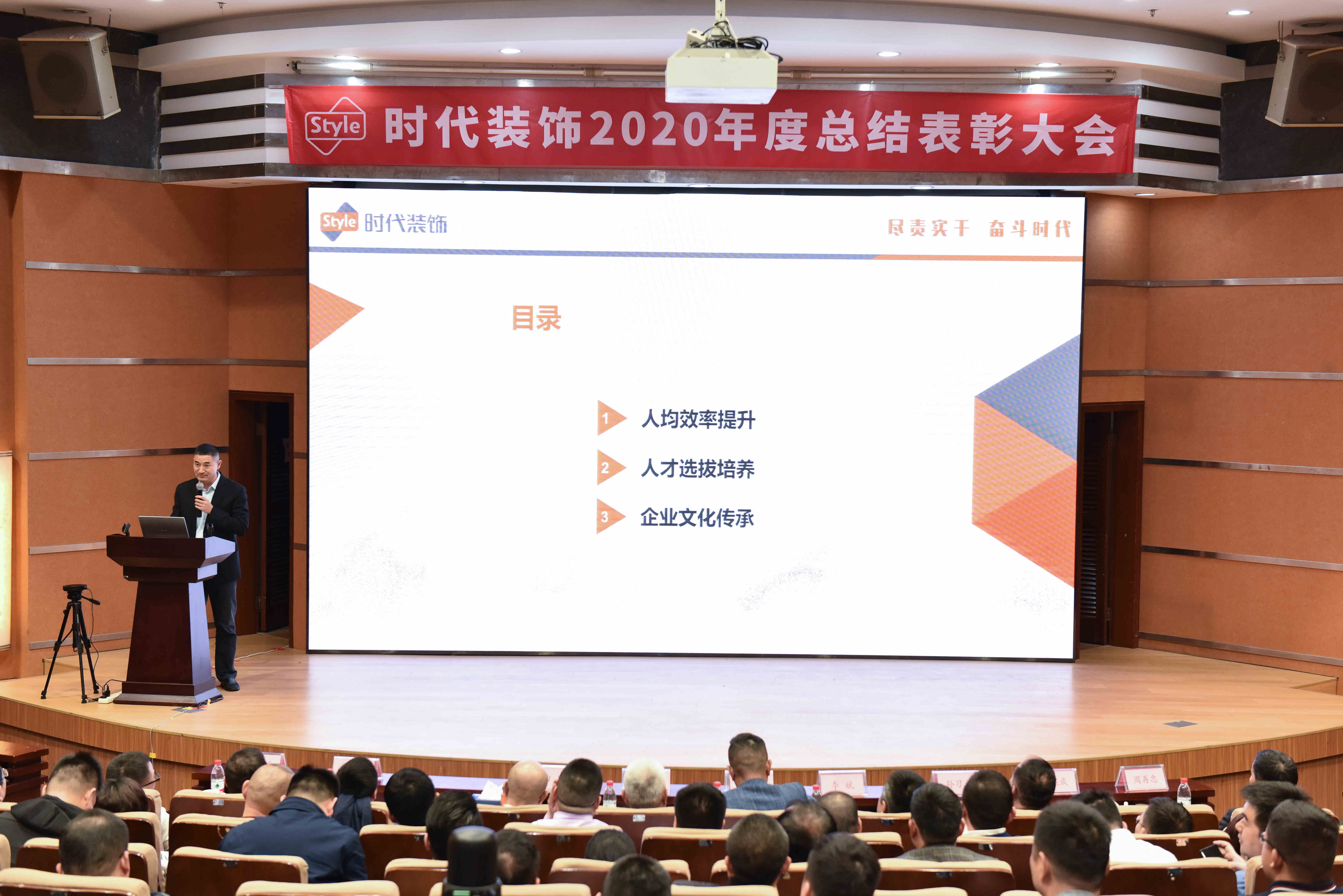 2021年3月23日,時代裝飾2020年度總結表彰大會圓滿舉行,公司董事長曲毅、副董事長李越等公司領導,各事業部、各職能部門負責人以及核心骨干共300余人出席大會。本次大會以“盡責實干,奮斗時代”為主題,回望公司在疫情肆虐的2020年里奮力實干取得的成績,并褒獎以奮斗書寫成就的優秀時代人。